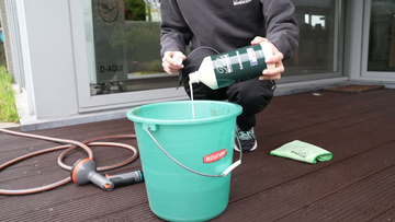 Remove old coatings if needed, sand or clean the wood, and rinse thoroughly. Make sure the surface is fully clean and dry before applying any finish.