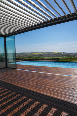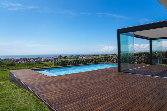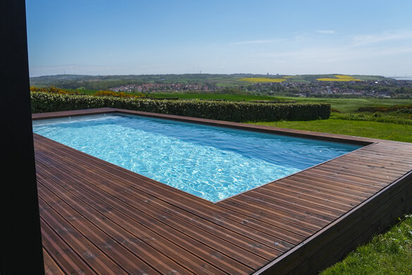 Questo spazio esterno sulla Costa d'Opale in Francia vanta una bellissima terrazza in legno di pino. È stata rifinita con DuroGrit, una finitura per legno per esterni estremamente resistente, perfetta per decking, rivestimenti, mobili da esterno e altro ancora!