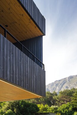 È stato scelto WoodCream per i rivestimenti esterni di questa splendida residenza a Hout Bay, Città del Capo, perché la finitura imita l'aspetto dello Shou Sugi Ban (antica tecnica giapponese di bruciatura del legno). Questa casa è stata progettata da Salt Architects e costruita da Musa Renovations and Projects. I proprietari volevano che i rivestimenti in legno avessero un aspetto moderno senza risultare troppo "lucidi" o con una finitura troppo nuova. WoodCream ha creato un aspetto naturale, mostrando la varianza delle venature naturali e un look vissuto. La scelta di questo prodotto, oltre che per motivi estetici, è dovuta anche alla facilità di applicazione e di manutenzione.