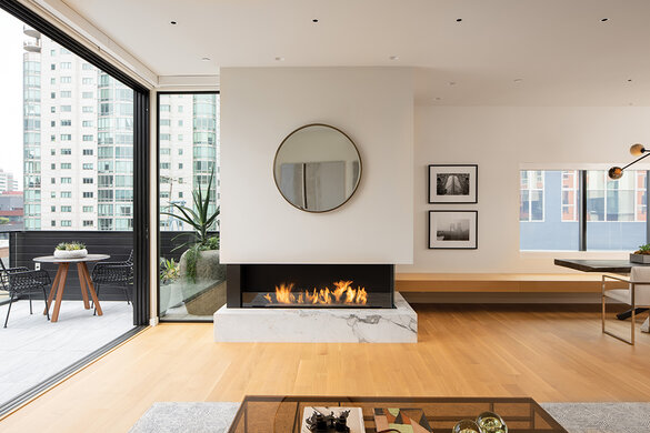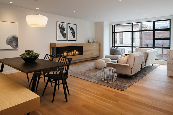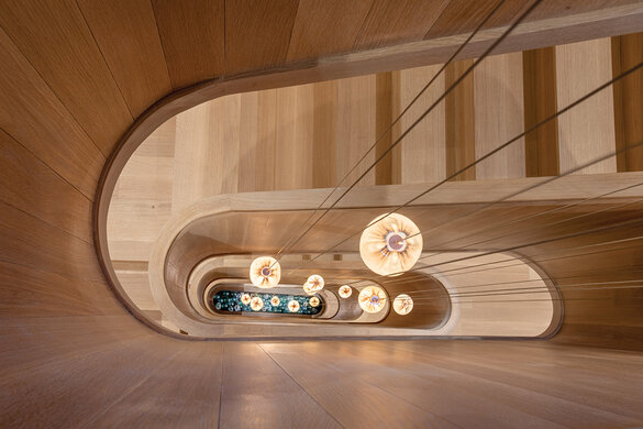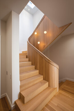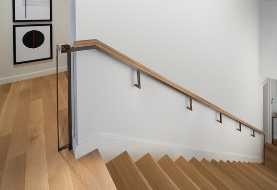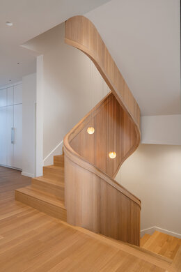 Questo look naturale e rilassante è stato creato da True Fabrication. Hanno utilizzato il nostro Rubio Monocoat Oil Plus 2C nel colore Natural per dare un aspetto opaco non rifinito al pavimento in legno e alla splendida scala. Il pavimento, i corrimano e la scala a chiocciola sono stati realizzati al 100% in rovere bianco tagliato a secco.